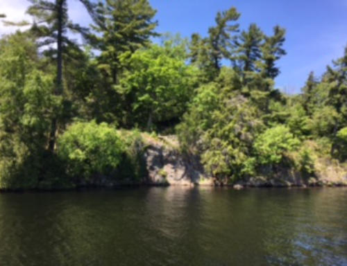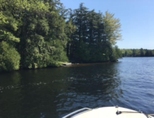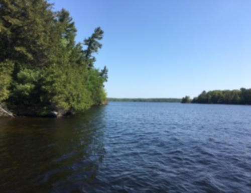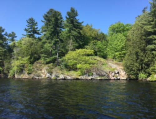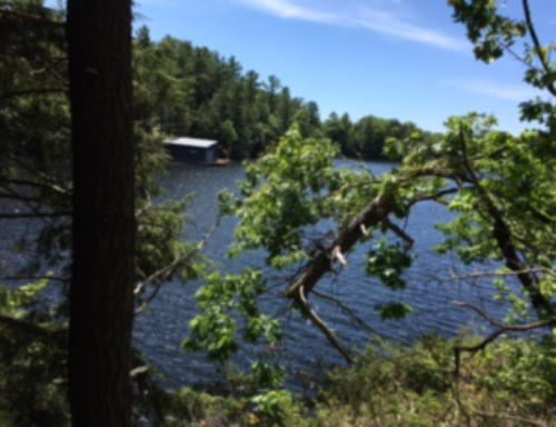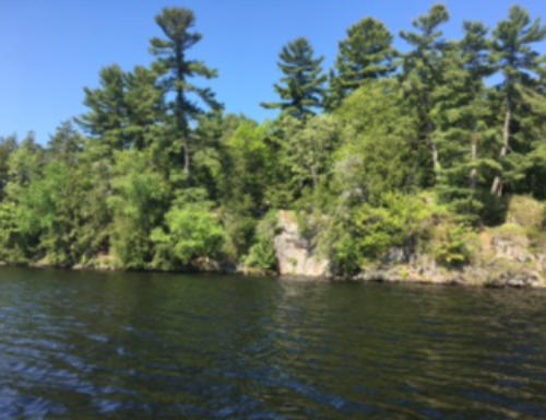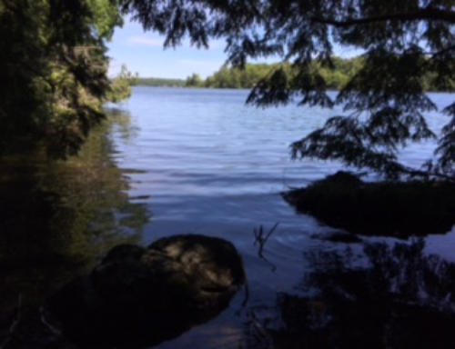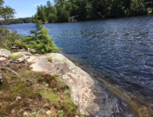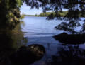 views facing across beautiful Six Mile Lake. Natural granite shoreline, shallow